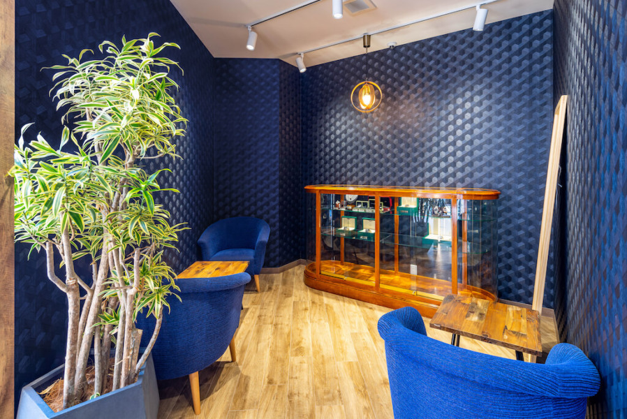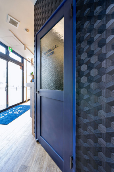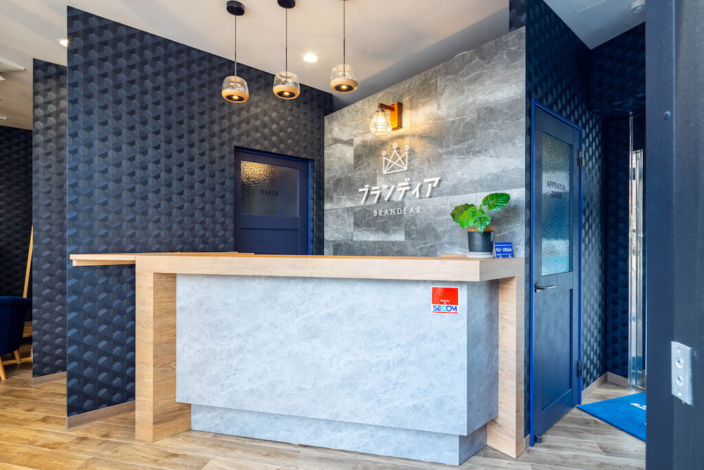 今回はブランド品の買取だけではなく、ブランディアの実店舗では初となる”販売”を開始する店舗のため、ベースカラーをシックなネイビーで統一し、より高級感を感じていただけるようなデザインにいたしました。