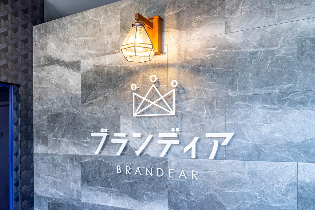 既存の宅配買取サービスのロゴは「Brandear」と英語表記ですが、店舗のオリジナルロゴは、CMで流れる「ブランド売るならブランディア」と耳に残るサービス名を目で認識していただけるようカタカナ表記に。